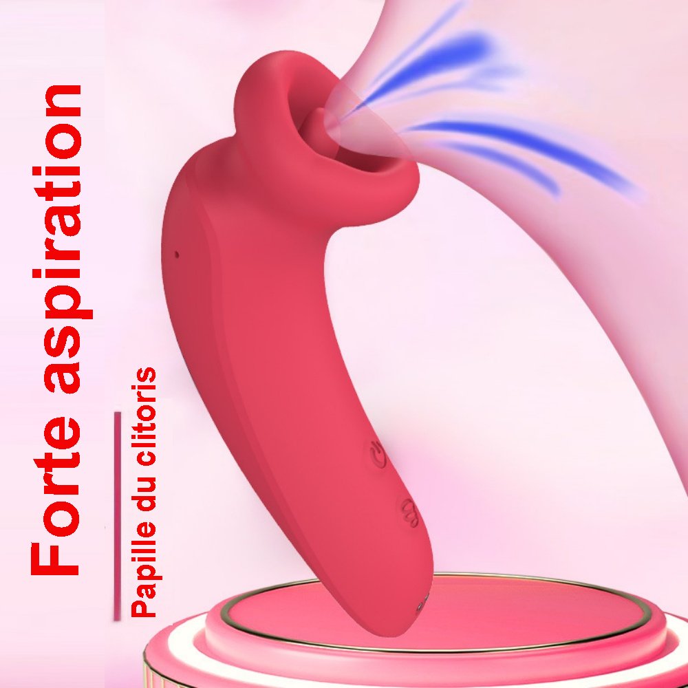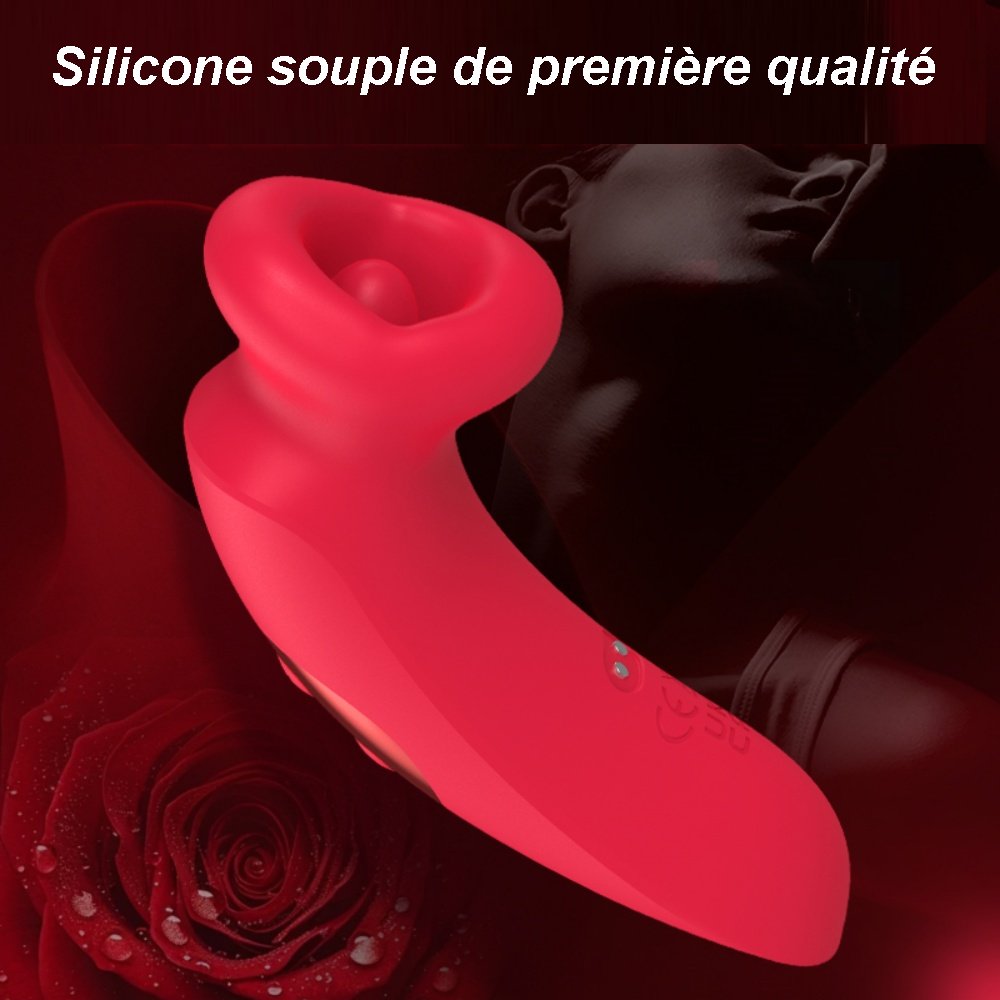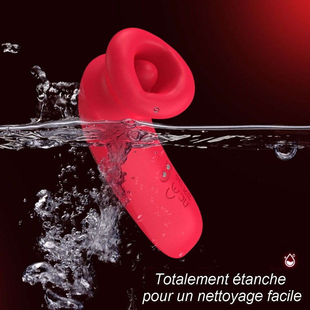 Vibromasseur rechargeable en silicone rouge à 10 modes avec fonction de succion.